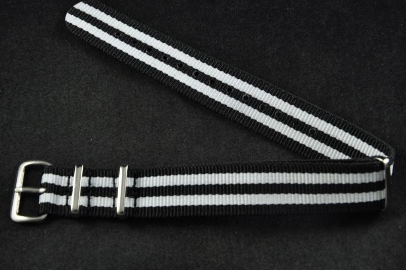 Pasek typu Nato, Nylonowy, Czarno-biały, 18mm