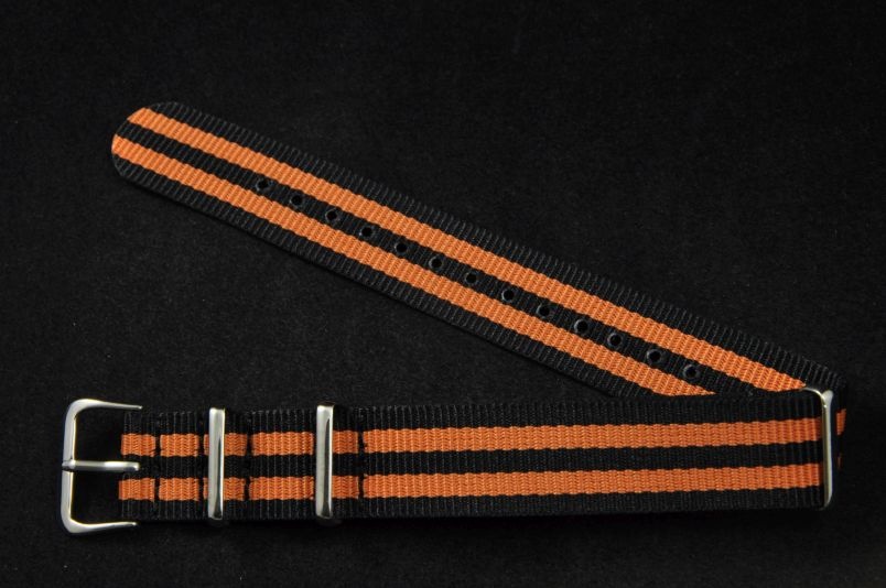 Pasek typu Nato, Nylonowy, Czarno-pomarańczowy, 18mm
