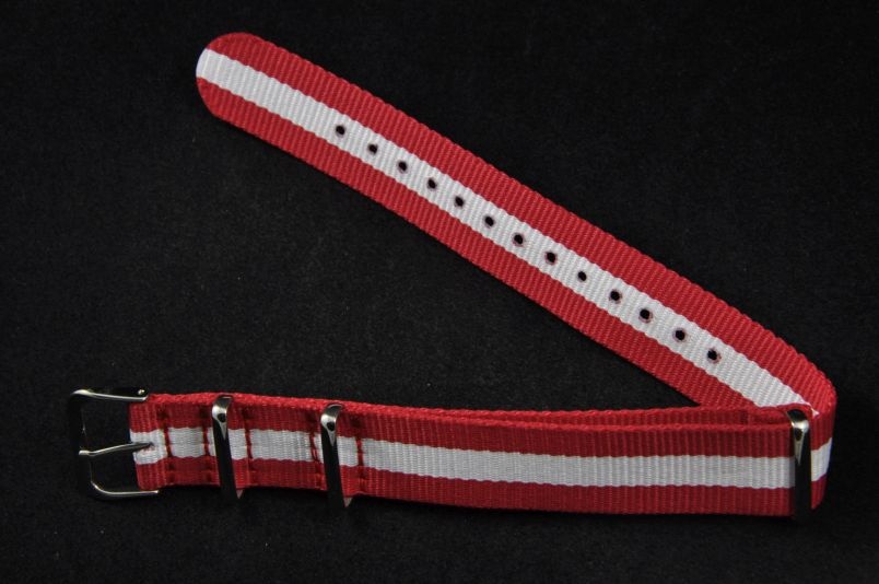 Pasek typu Nato, Nylonowy, Czerwono-biały, 18mm