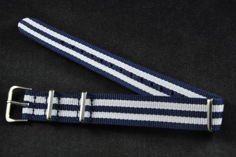 Pasek typu Nato, Nylonowy, Granatowo-biały, 18mm