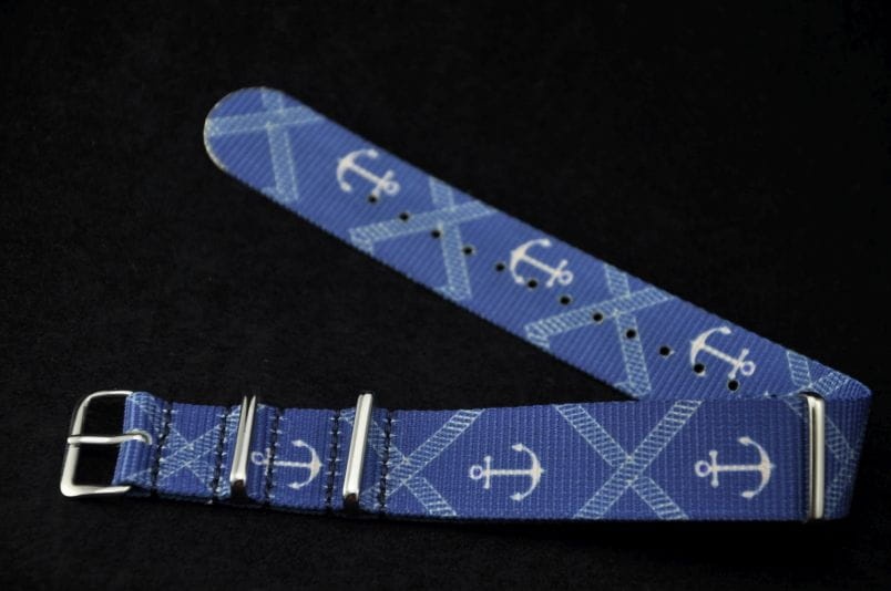 Pasek typu Nato, Nylonowy, Niebieski w kotwice, 18mm