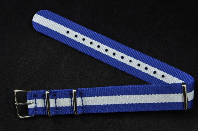 Pasek typu Nato, Nylonowy, Niebiesko-biały, 18mm