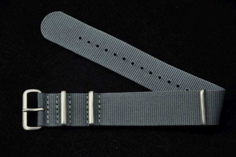 Pasek do zegarka typu Nato. Wykonany z nylonowego materiału. Pasek do zegarków sportowych i wojskowych. Wodoodporny. Satynowe, stalowe szlufki oraz klamerka, zamontowana na stałe.