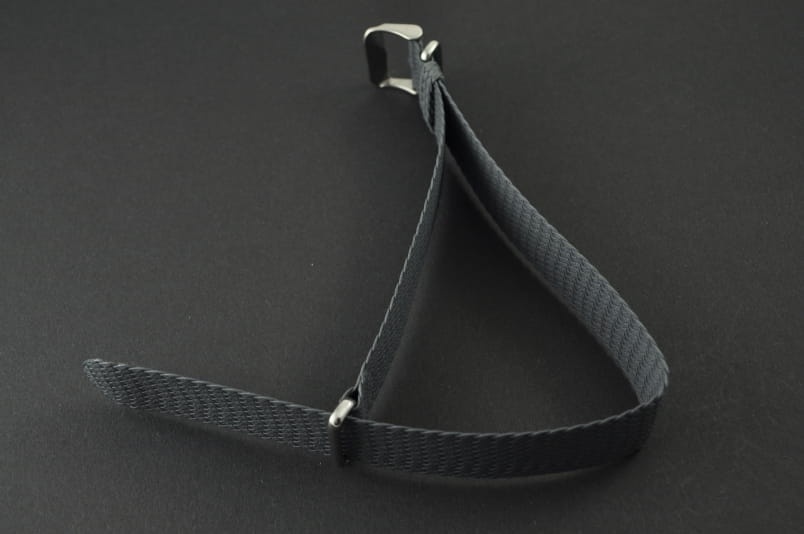 Pasek do zegarka typu Nato. Wykonany z plecionego nylonowego materiału typu perlon. Wodoodporny. Stalowa klamerka i szlufki. Jedna szlufka luźna.