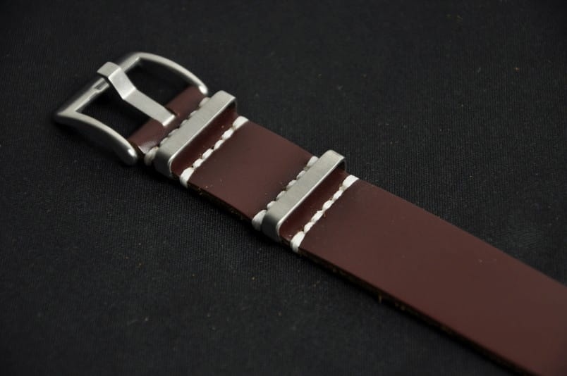 Pasek typu Nato ze skóry naturalnej. Wykonany z jednego kawałka skóry o grubości 1,6mm. Wszyte stalowe szlufki. Pasek szerokości 20mm.