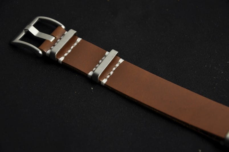 Pasek typu Nato ze skóry naturalnej. Wykonany z jednego kawałka skóry o grubości 1,6mm. Wszyte stalowe szlufki. Pasek szerokości 20mm.