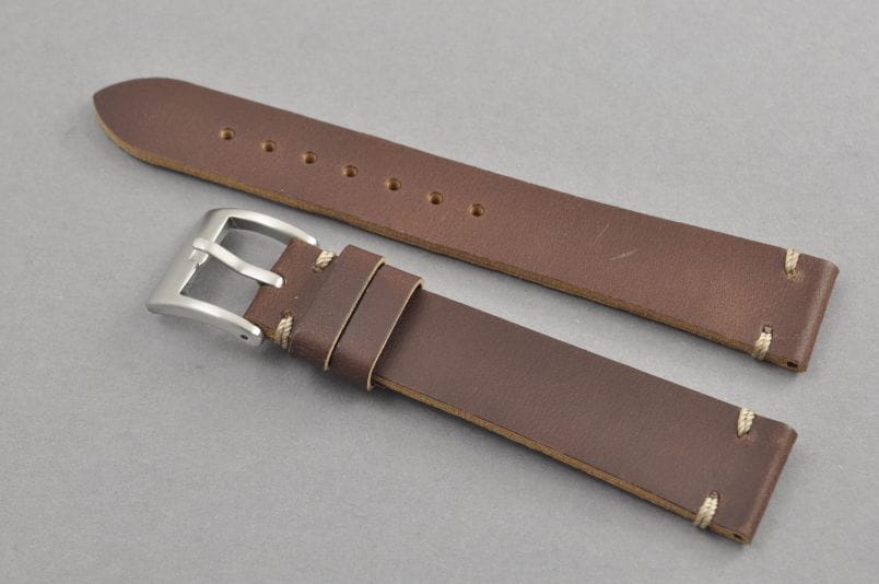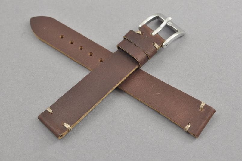 Pasek wykonany z naturalnej skóry o matowym wykończeniu i naturalnej strukturze. Płasko pogrubiany i miękki. Pasek przeszyty ozdobnymi pętelkami przy mocowaniu i klamerce. Dwie szlufki, metalowa klamerka.