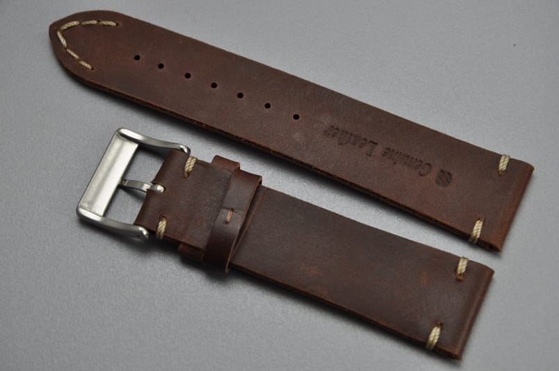 Pasek wykonany z naturalnej skóry o matowym wykończeniu i naturalnej strukturze. Płasko pogrubiany i miękki. Pasek przeszyty ozdobnymi pętelkami przy mocowaniu i klamerce. Ozdobne szycie w kształcie V na końcu jednej części. Dwie szlufki, metalowa klamerka.