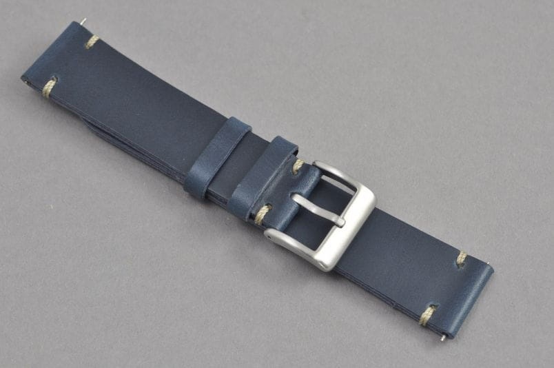 Pasek wykonany z naturalnej skóry o matowym wykończeniu i naturalnej strukturze. Płaski, klejony, dość miękki. Pasek przeszyty ozdobnymi pętelkami przy mocowaniu i klamerce. Dwie szlufki, metalowa klamerka.