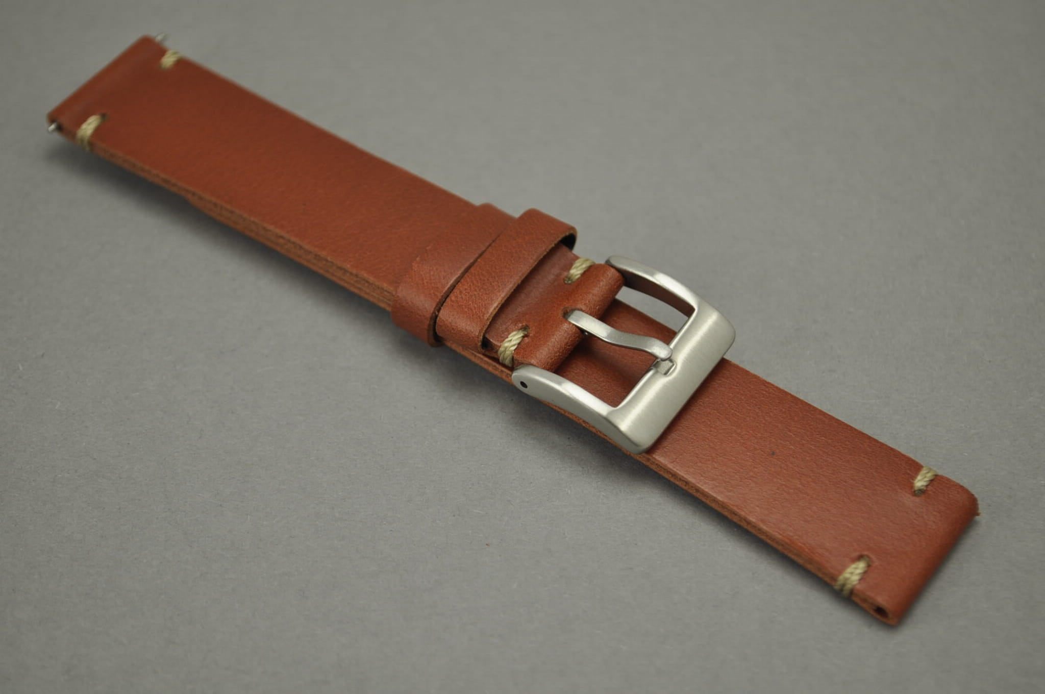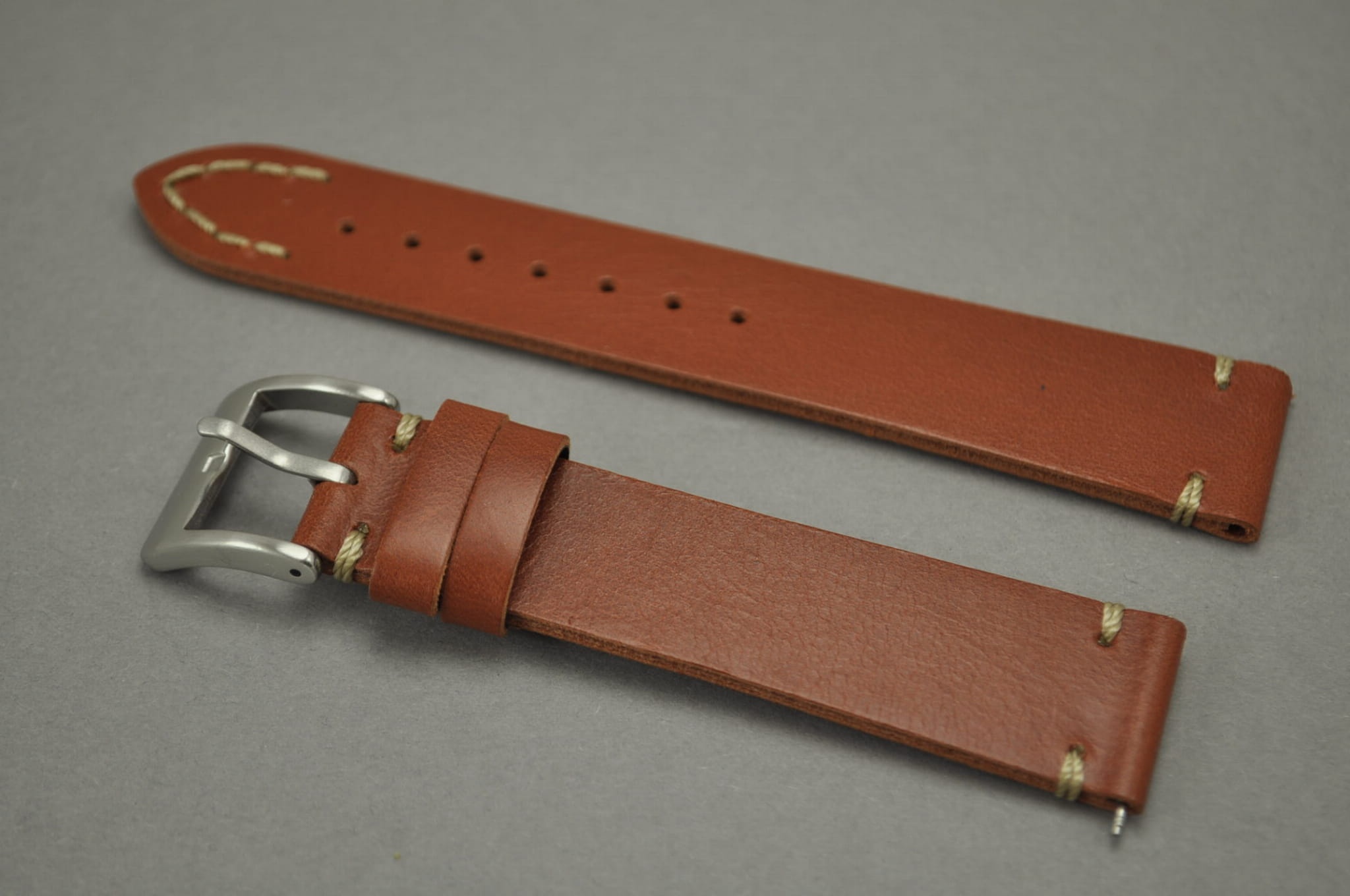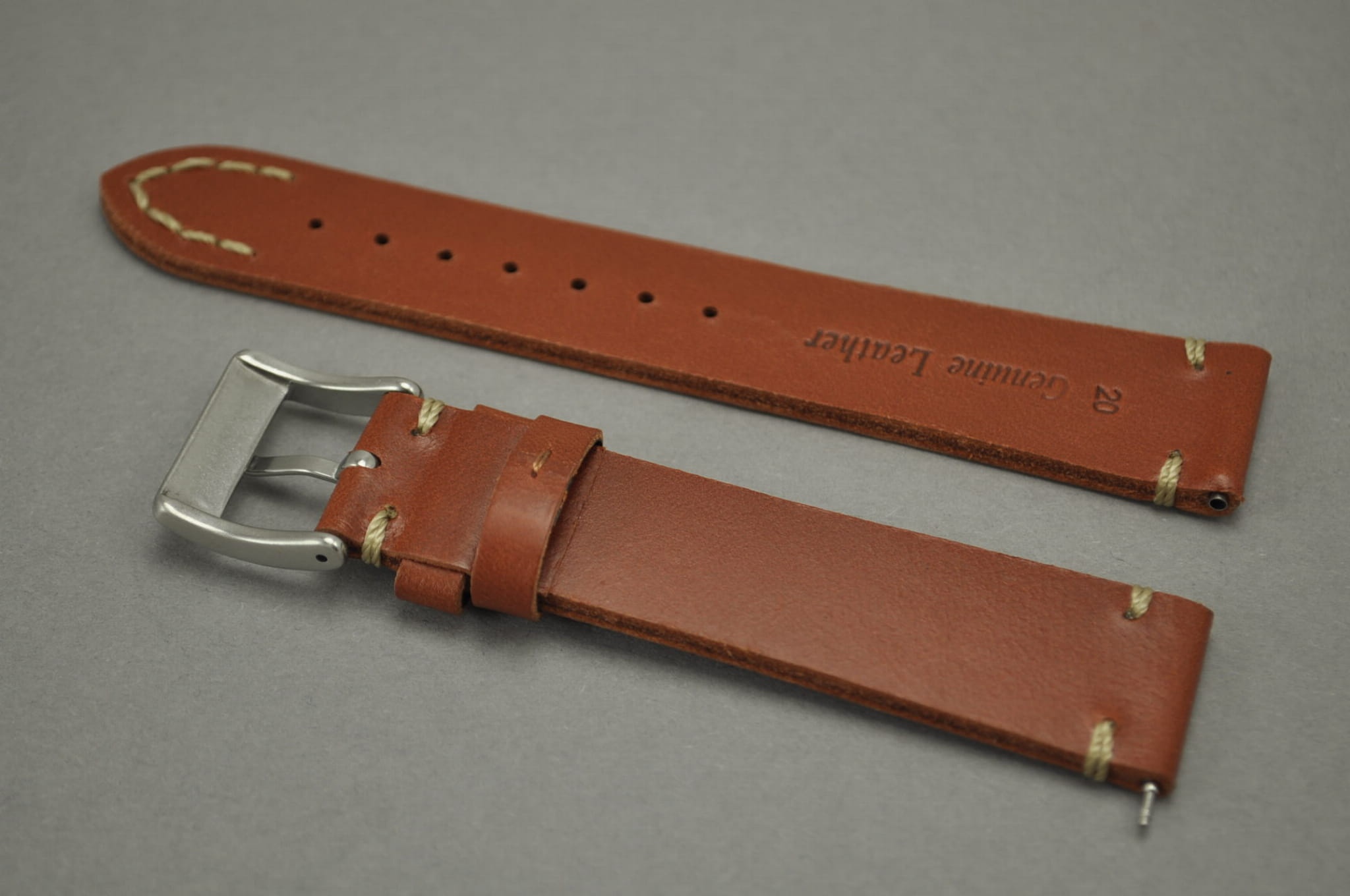 Pasek wykonany z naturalnej skóry o matowym wykończeniu i naturalnej strukturze. Płasko pogrubiany i miękki. Pasek przeszyty ozdobnymi pętelkami przy mocowaniu i klamerce. Ozdobne szycie w kształcie V na końcu jednej części. Dwie szlufki, metalowa klamerka.