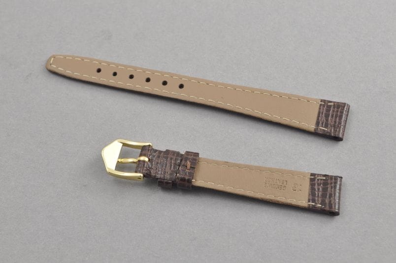 Do zegarków z mocowaniem 13mm. Charakterystyczna faktura skóry byczej. Elegancka licowa futrówka, równe zakończenie paska. Pogrubiony do ok. 4mm. Przeszyty nicią w kolorze. Podwójna szlufka, stalowa klamerka. Pasek nawiązujący wyglądem do oryginalnych pasków markowych zegarków z lat 60/70 jak