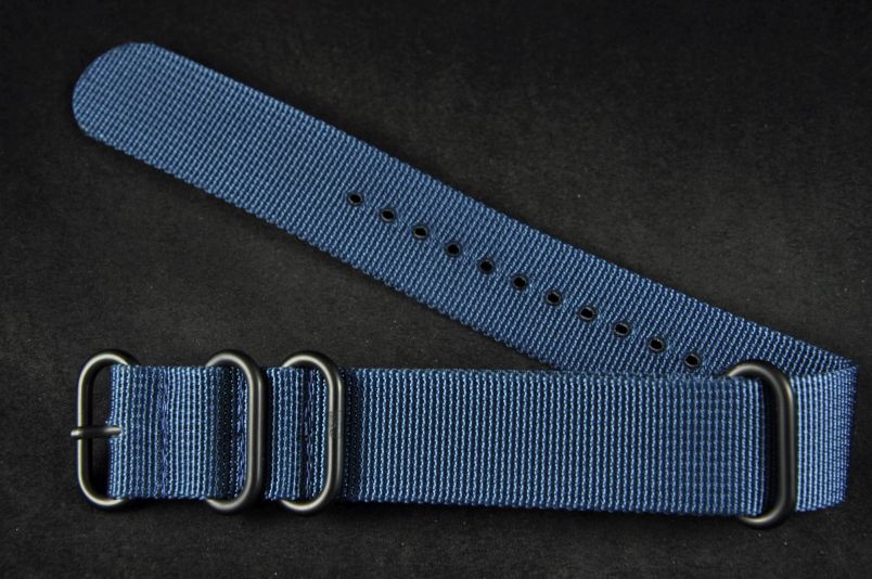 Pasek typu Zulu, Nylonowy, Niebieski, Czarne okucia, 18mm