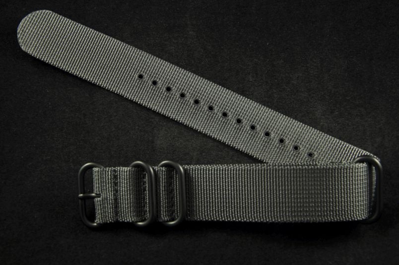 Pasek typu Zulu, Nylonowy, Szary, Czarne okucia, 22mm
