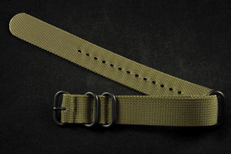 Pasek typu Zulu, Nylonowy, Zielony, Czarne okucia, 20mm