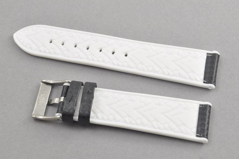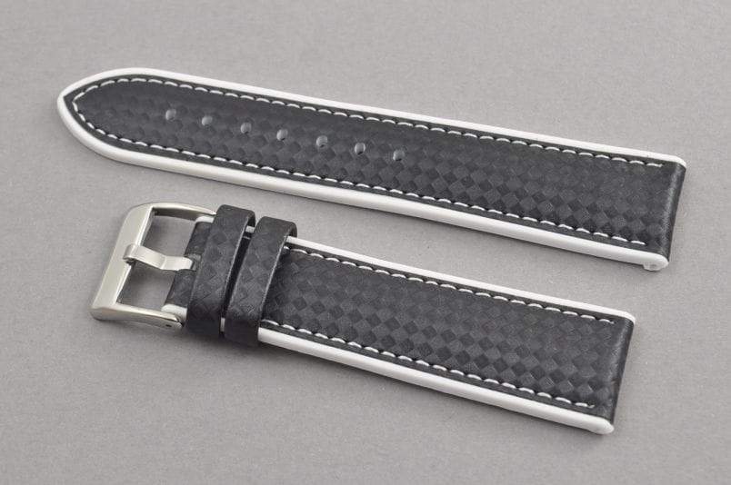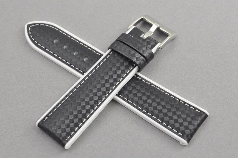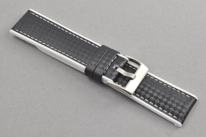 Pasek wodoodporny, Skóra i Silikon, wzór carbonu, Czarno-biały, 22mm
