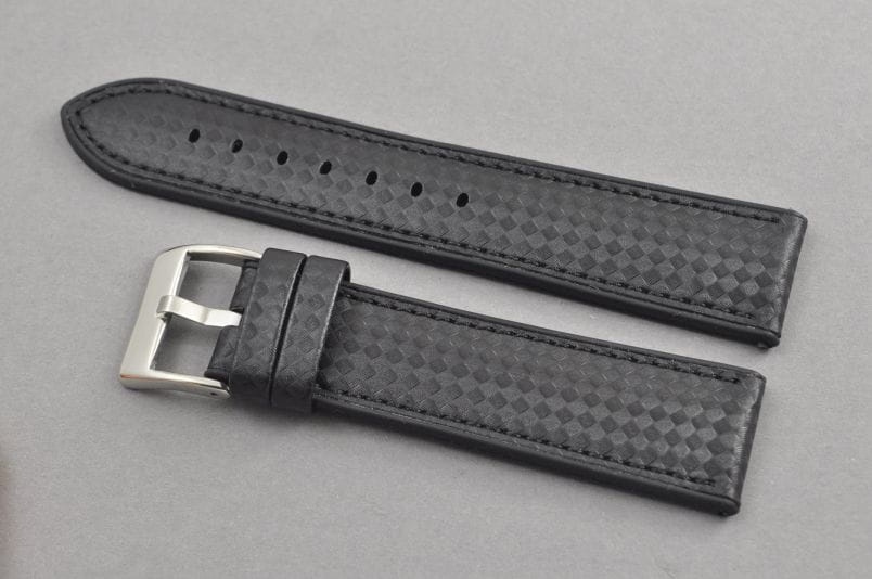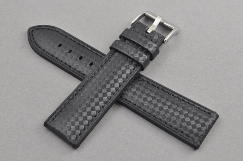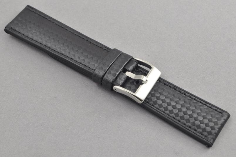 Pasek wodoodporny, Skóra i Silikon, wzór carbonu, Czarny, 20mm