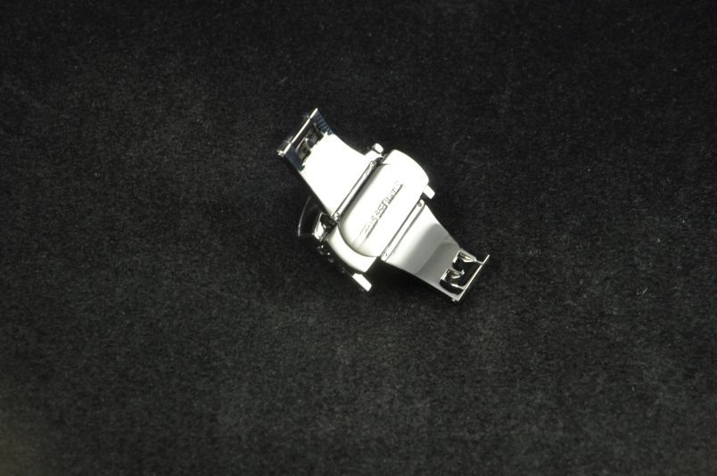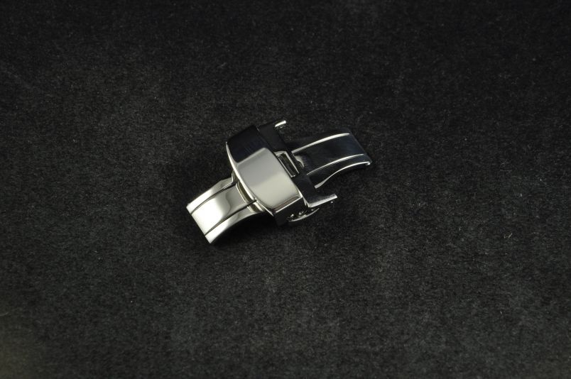 Zapięcie motylkowe do pasków. Wykonane ze stali szlachetniej 316L.Otwierane na dwie strony z pomocą przycisków. Błyszczące, w kolorze srebrnym. Pasek mocowany z jednej strony za pomocą teleskopu, z drugiej strony na bolec.